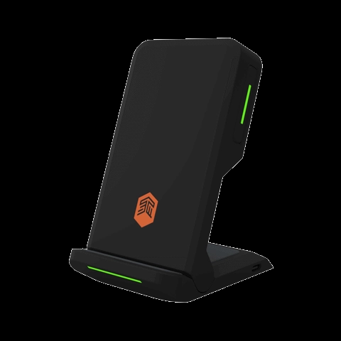 main material(s): ABS, silicone, electronic components dimensions: 5.94 x 2.95 x 0.93 in / 15.1 x 7.5 x 2.36 cm weight: .49lbs / .221kg power input: 9V/3A 12V/2.5A power output: Apple Watch: MAX 3W Phone: MAX 15W (Most phones MAX 7.5W) AirPods: MAX 5W accessories: C to C cable and carry bag